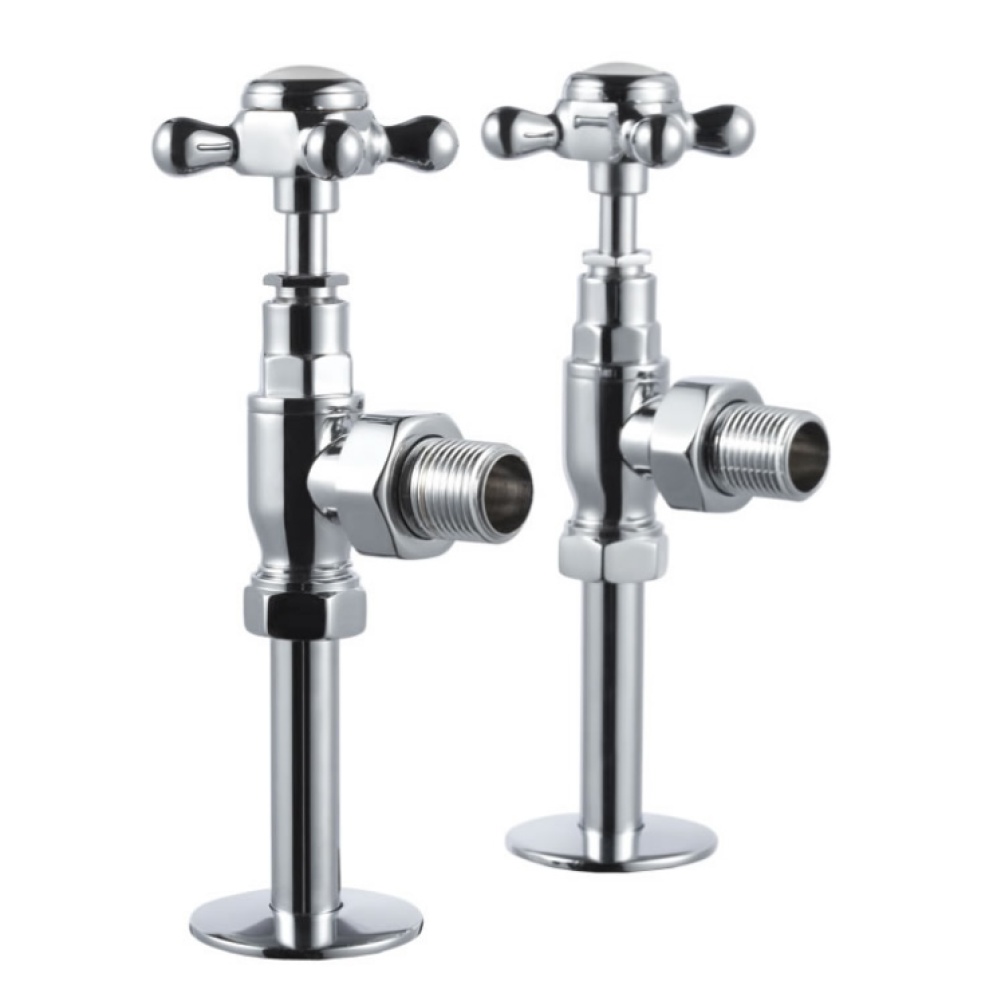 Embellished by ornate crosshead handles, these Chrome Angled Radiator Valves are an attractive piece of pipework from the Burlington range that would provide the perfect complement for the towel radiators from the same range, accentuating the classic aesthetic of your traditional bathroom.