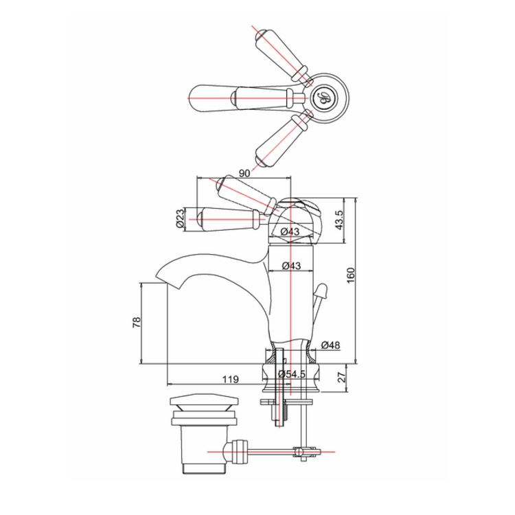 Burlington Chelsea Regent Curved Mono Basin Mixer With Waste.