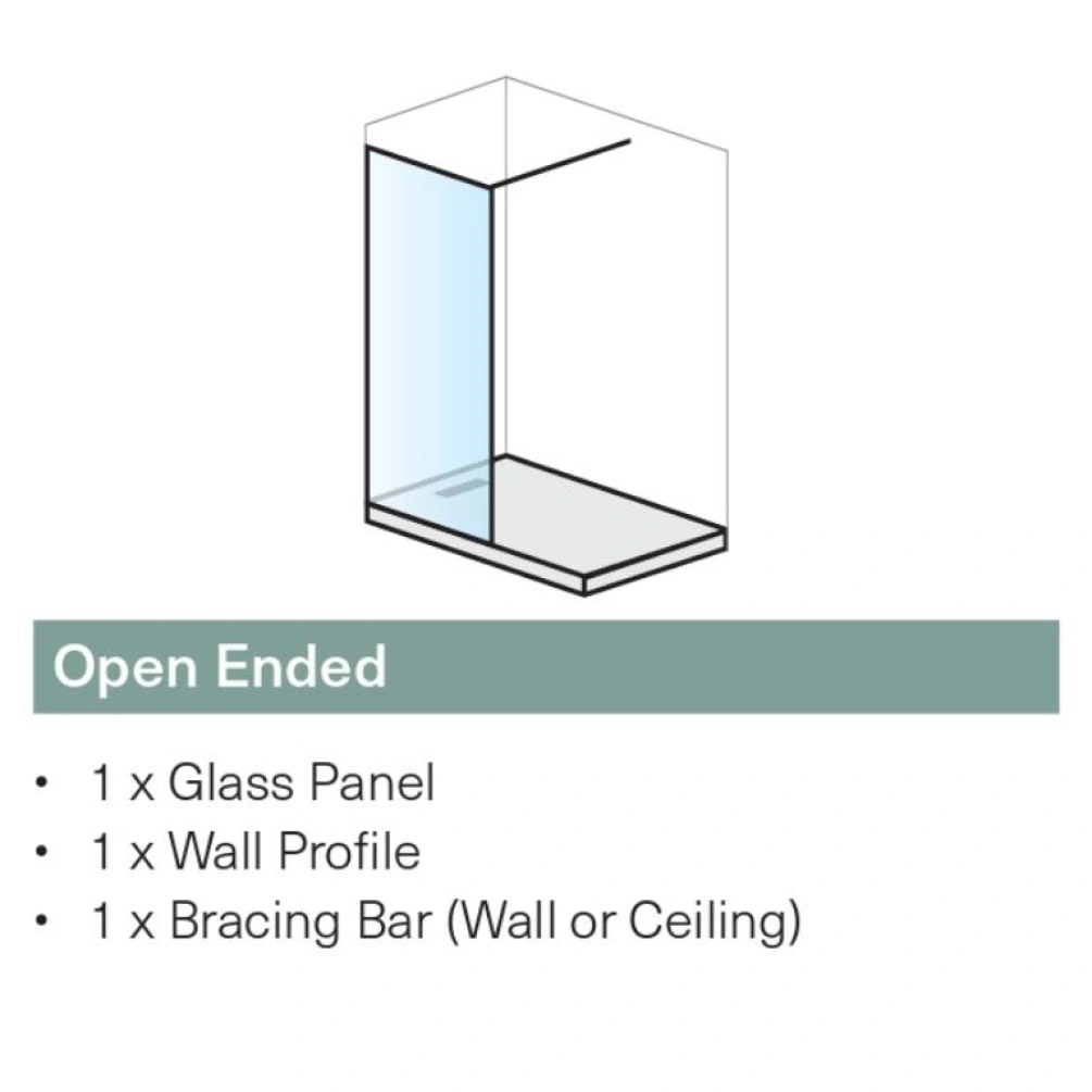 Measuring 2000mm in height and only 8mm in thickness, the easy clean glass panel that compromises this walk in shower enclosure is secured to the wall via its chrome plated wall profile, which alone can support panels of up to 500mm in width. For panels measuring 600mm and above, an additional stabilising shower bracing bar can be purchase, which can connect to your wall, ceiling and even another glass panel.