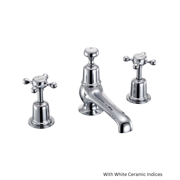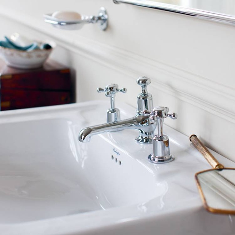 Adorned by ceramic indices and crosshead handles, the Claremont Chrome 3 Tap Hole Basin Mixer is an elegant brassware set from the Burlington range that blends classic flourishes with contemporary functionality, producing the perfect fixture for any traditional bathroom that wants to hold onto some modern conveniences.