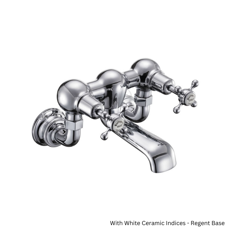 Adorned with ceramic details and crosshead handles, the Claremont Wall Mounted Bath Filler is a charming piece of brassware from the Burlington range that delights in the replication of traditional motifs to produce an authentic fixture befitting any classically themed bathroom.