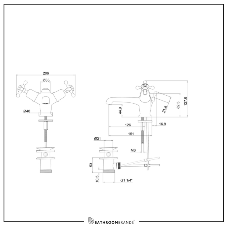 Compatible with any number of traditional basins and vanity units, this compact basin mixer also includes a choice of waste as a ideal finishing touch.