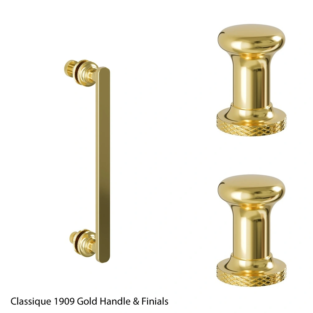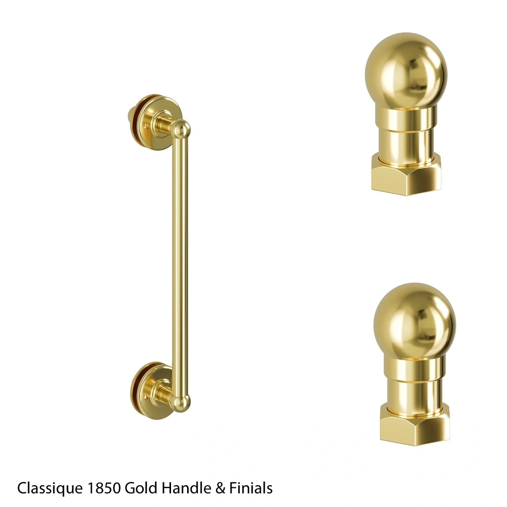 The choice of shower door handle and finials complete the look of your traditional shower door or enclosure, and are available in two elegant styles. For a classical Victorian or Edwardian look, choose the 1850 style, featuring a perfectly rounded design finished with a striking circular ball. Alternatively, you can opt for the 1909 style for a more modern take on a traditional design. Each set includes one handle and two finials when purchasing a single door, and one handle and three finials for a door with side panel. Please note, finials do not need to be installed but are included as standard.