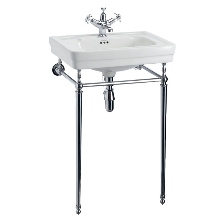 With the option of one or three tap holes, the Contemporary 580mm Basin & Chrome Washstand is a refine piece of sanitaryware from the Burlington collection that would provide the perfect complement for any traditional inspired bathroom.