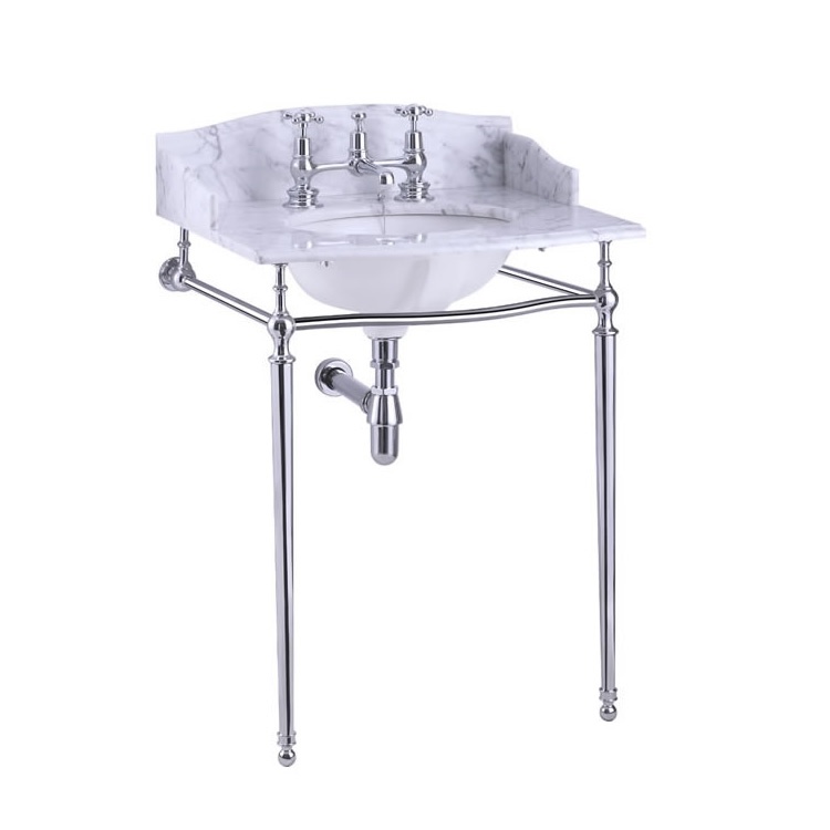 Browse through our range of old and period-style Traditional Washstands, including Victorian Washstands and other timeless periods across the 18th, 19th and early 20th centuries such as Georgian and Edwardian. This also includes stylish traditional console basins with ceramic legs. Featuring iconic and stereotypical traditional detailing such as patterned and engraved legs and frames, and basins with roll top rims and splashbacks they will definitely stand out in any heritage-themed bathroom. Some of these basins, as well as coming with a choice of 2 legs and wall mounted supports, or freestanding with 4 legs, also come with shelving to keep towels on hand close by.