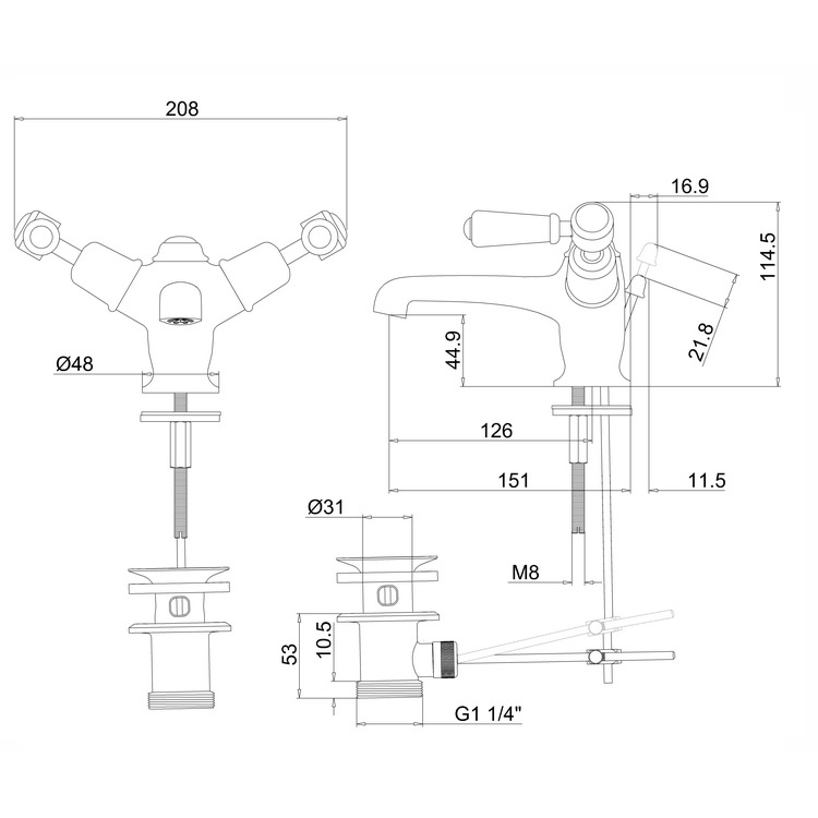 This versatile Chrome finished basin mixer is available with a choice of quarter turn ceramic lever handles. With white indices that will suit a range of traditional bathroom interiors.