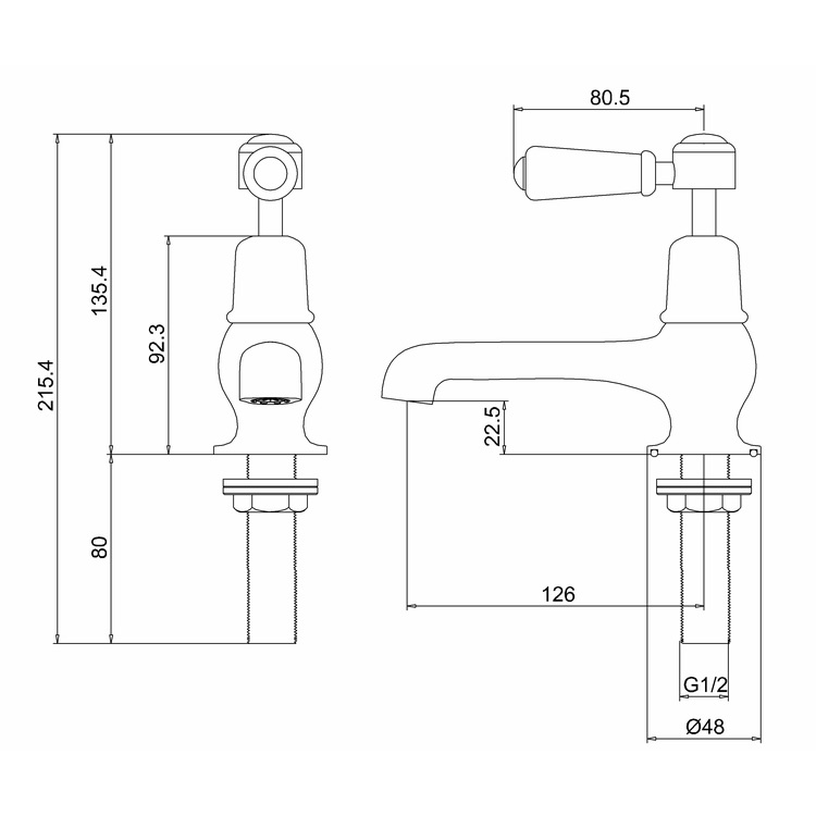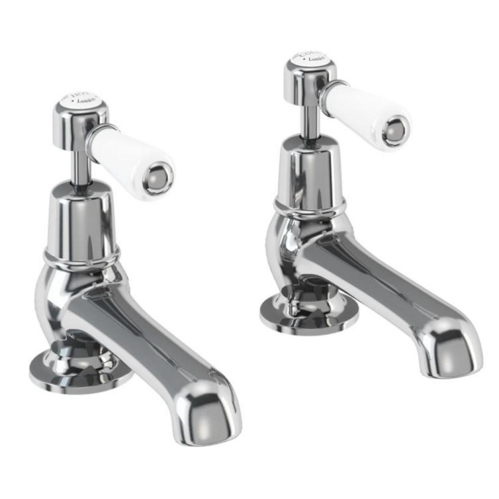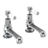 This pair of basin taps feature a simple design with a Chrome finish and white ceramic levers handles, as well as quarter turn operation to make them even easier to use. Perfect for a range of traditional vanity units and basins, creating a unique, period-inspired look that will transform your space with ease.