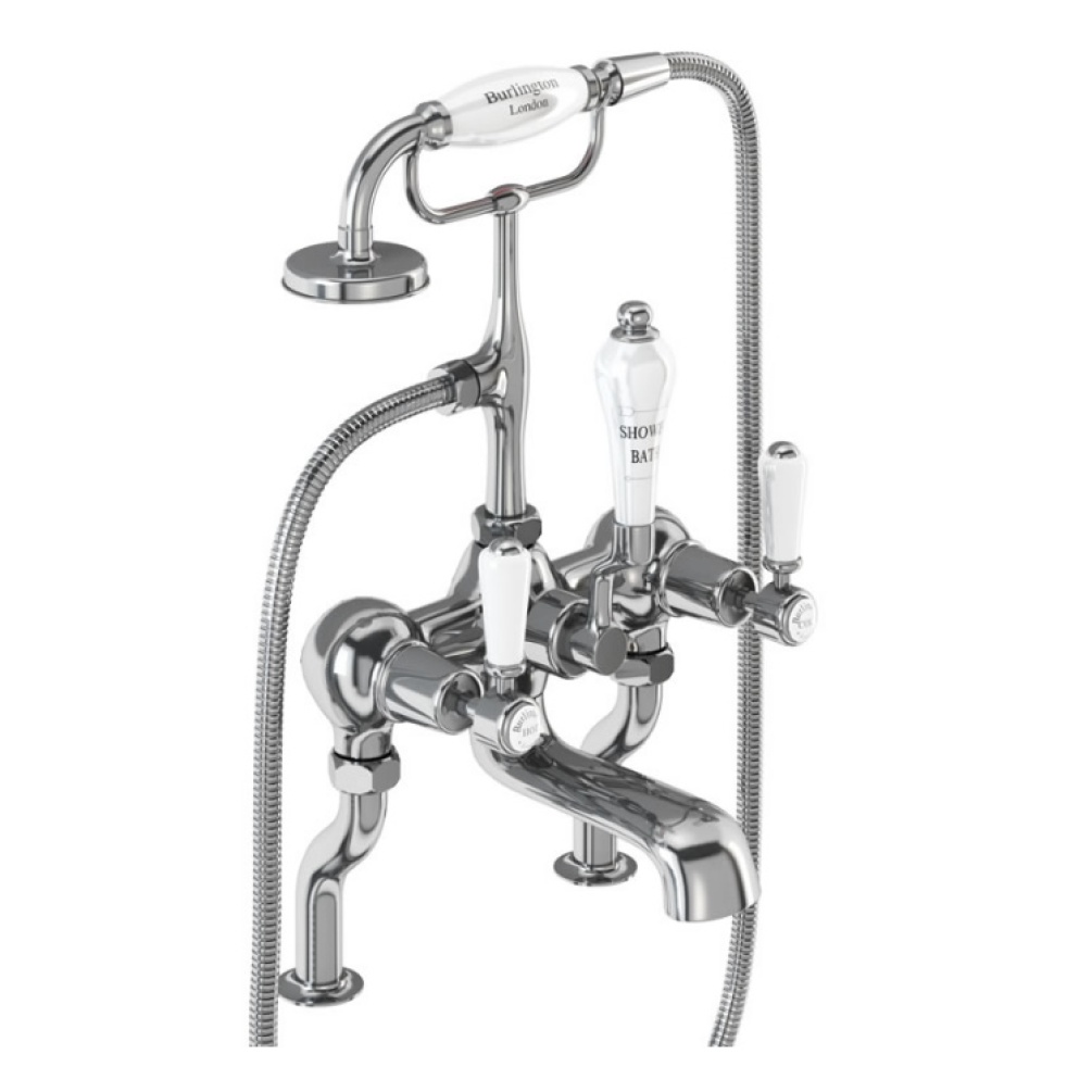 This versatile bath shower mixer features a Chrome finish with white ceramic handles and indices that will create a stunning central fixture within any traditional bathroom scheme.