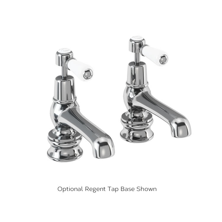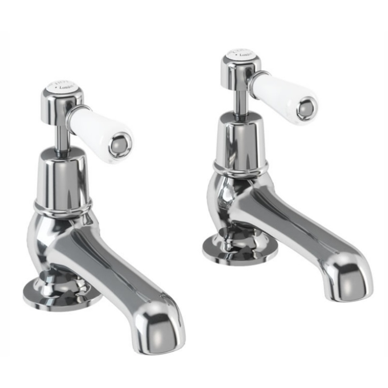 This pair of bath taps from the Burlington Kensington tap range feature 5" spouts with white ceramic lever handles and a versatile Chrome finish that will suit any traditional bathroom interior, especially suitable with our wide range of traditional baths.