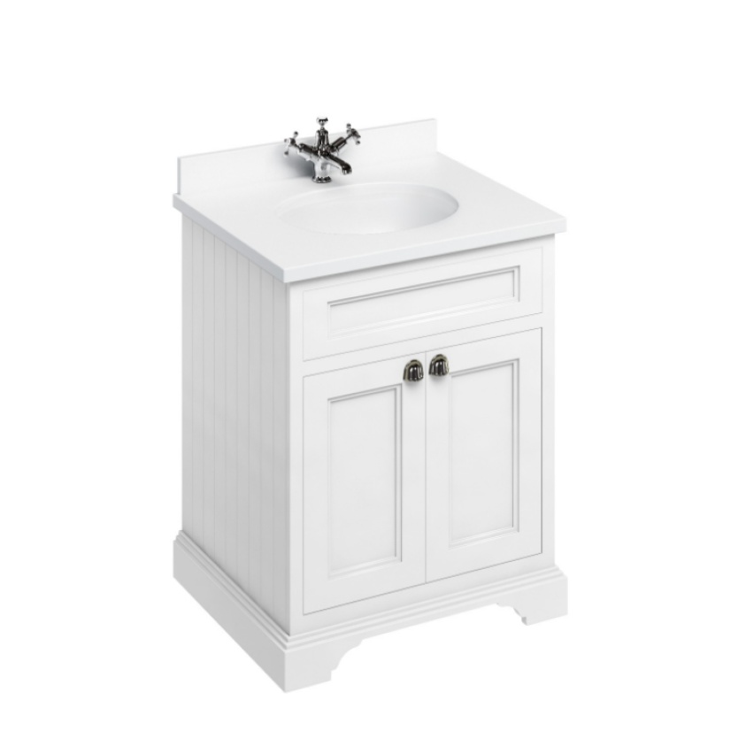 Burlington Minerva 650mm Worktop & Matt White Freestanding Vanity Unit with Doors