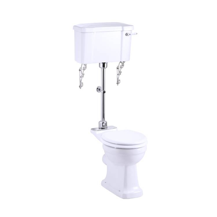Compatible with numerous seats in an array of colours and finishes, the Regal Medium Level Toilet is an elegant piece of sanitaryware from the Burlington range that would slot seamlessly into any traditional style bathroom, without compromising on the conveniences of modern design.