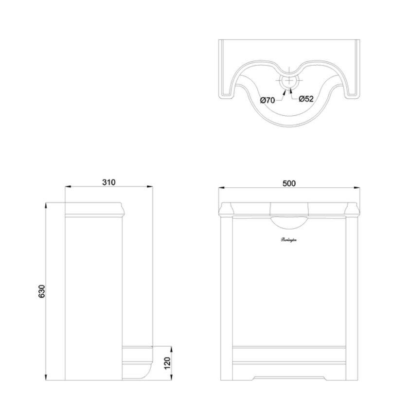 Designed for eco-conscious homes and businesses, this urinal embodies the very best traits of traditional toilet design, showcasing a refined gloss white finish and ornamental cornicing that deliver a set, timeless aesthetic. Measuring 630mm in length and 500mm in width, it offers perfect rectangular proportions and built-in wall shielding for comfortable, private individual use.