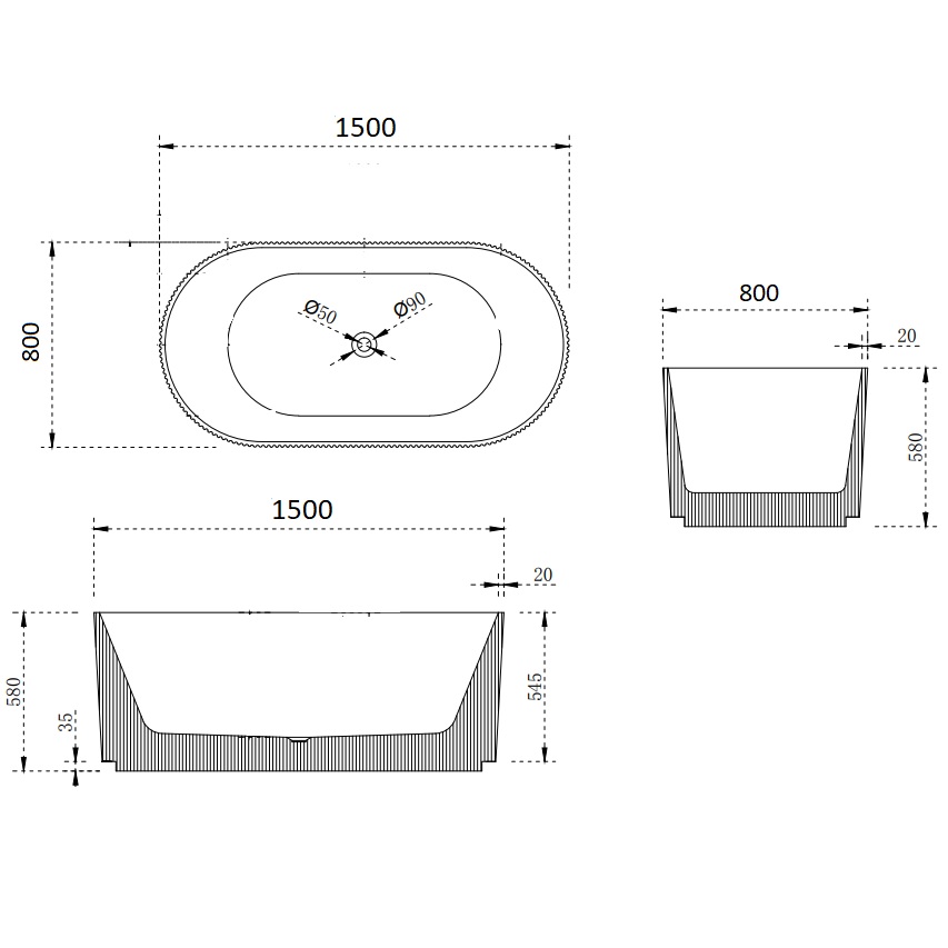 The compact 1500mm length means that it can be accommodated in a variety of sized spaces ensuring that even with a smaller bathroom, it can still be a luxurious addition, and without compromising on the dream of having a freestanding bath.