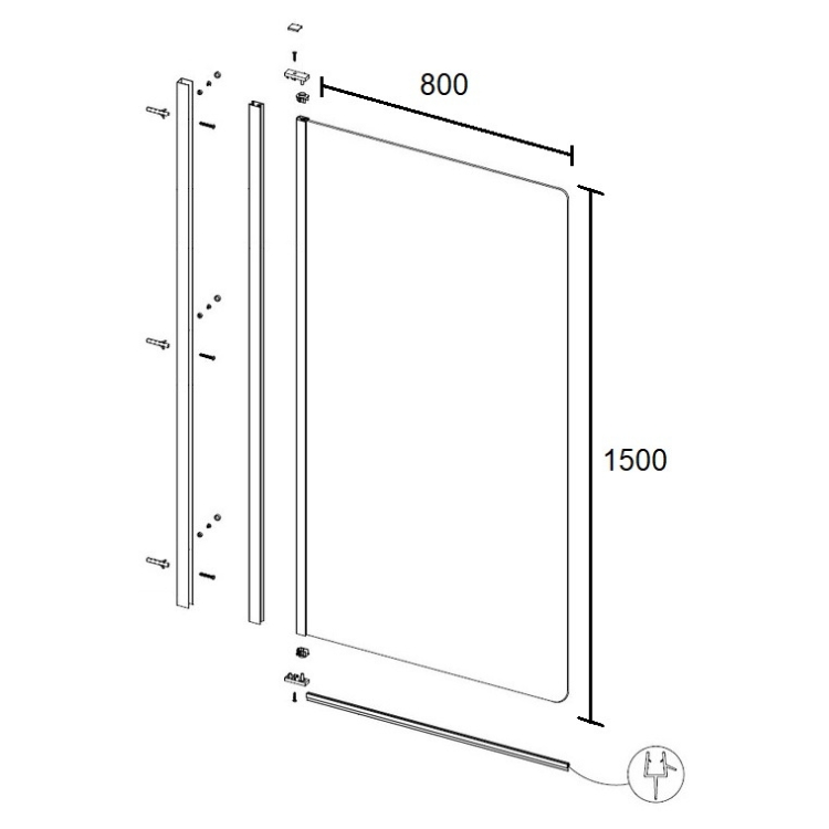 - Dimensions: 800mm width x 1500mm height x 6mm depth