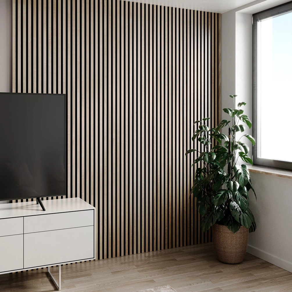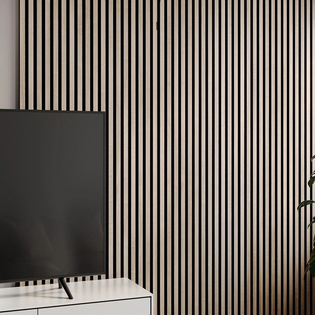Add touches of the natural world to any living space with this Camden Oak and Black Slatted Wall Panelling, which comes in a pack of 3 panels allowing you to cover an area of around 1m² area of wall.