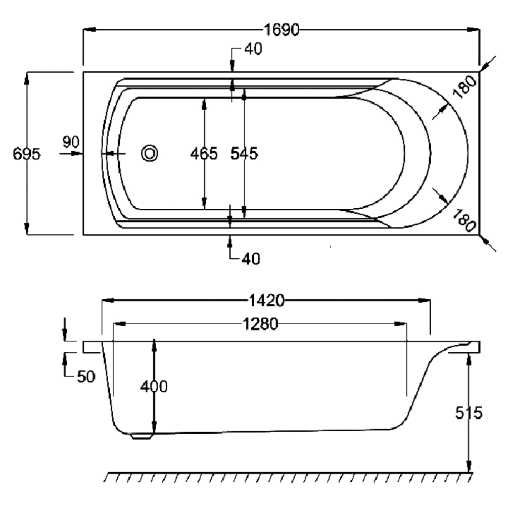 Featuring a softly rounded interior, this single ended bath includes a spacious C-shaped area at one end, perfect for a long, relaxing soak. Its exterior dimensions showcase a chic rectangular design: 1700mm in length, 700mm in width, and a practical height of 515mm, making it an ideal fit for various modern bathroom styles. The impressively slim rim, measuring just 40mm, also provides a minimalist flair for spaces that embrace simplicity.