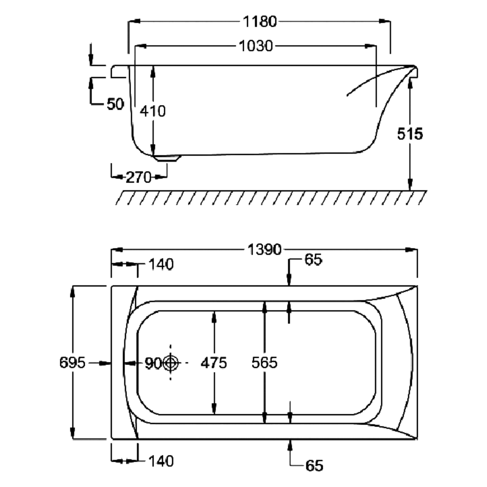 With dimensions of 1400mm in length, 700mm in width, and a height of 515mm for easy accessibility, this rectangular single ended bath features a beautifully sloping backrest designed to cradle your neck and support your back, making it an ideal choice for those who love to relax and unwind in the tub.