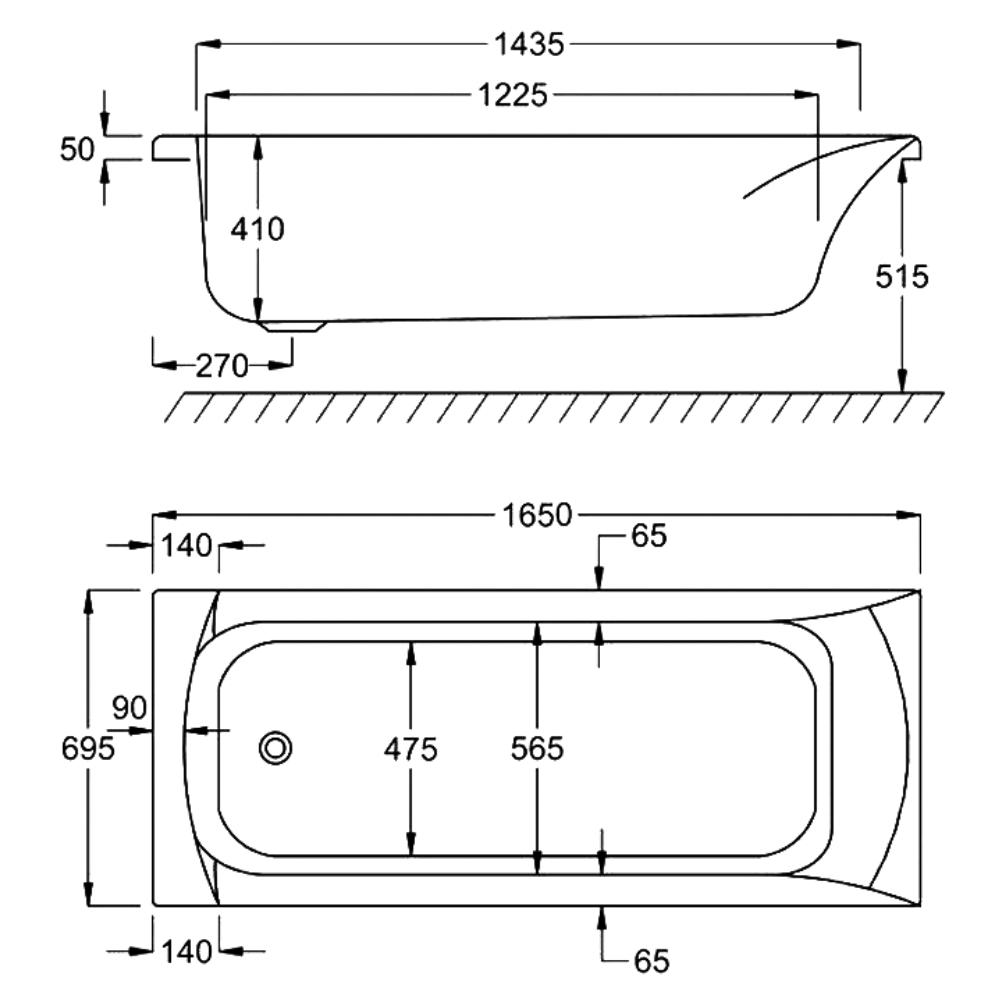 With dimensions of 1650mm in length, 700mm in width and 515mm in height, this single ended bath includes a carefully designed sloped backrest that provides outstanding support for your neck and back - perfect for relaxing after a tiring day.