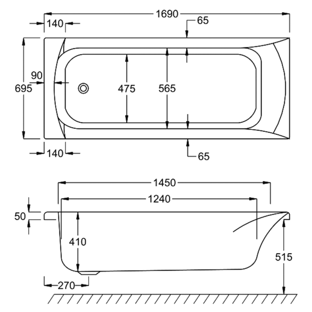 With dimensions of 1700mm in length, 700mm in width, and 515mm in height, this single ended bath incorporates a meticulously engineered sloped backrest, providing optimal back support - ideal for relaxation and stress relief.