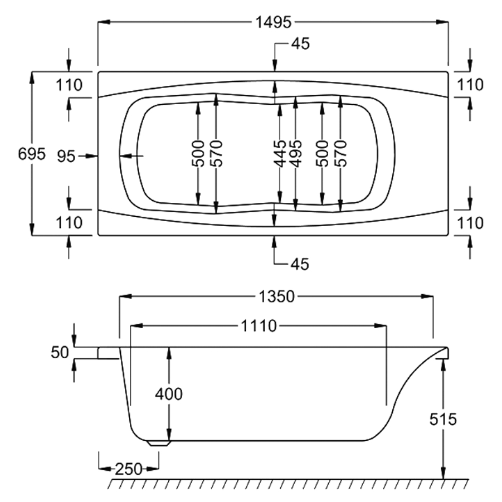 With a depth of 400mm and a total capacity of 145 litres, this bath ensures enough water coverage for a relaxing soak for one person. Plus, it features pre-drilled waste and overflow holes, simplifying the installation process.