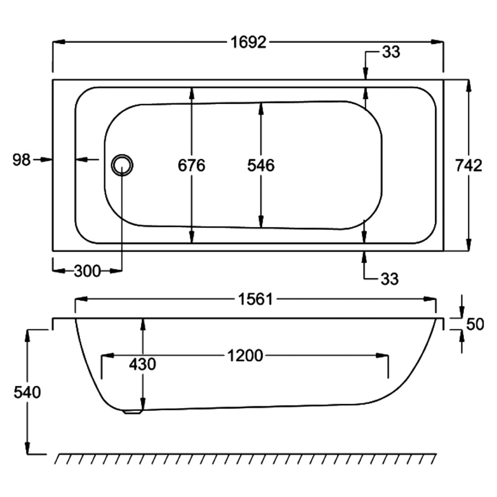 Measuring 1700mm in length, 750mm in width, and 540mm in height, this single ended bath utilises a streamlined rectangular form, defined by a minimalist 33mm rim and crisp geometric lines, which ensure both durability and comfort for users. The interior features a gentle incline from the rectangular edges, fostering a luxurious soaking experience.