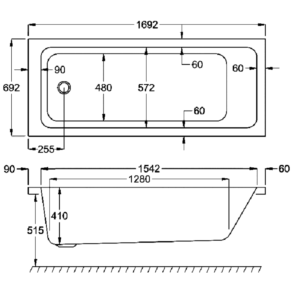 With precise dimensions of 1700mm in length and 700mm in width, this single-ended bath has a stylish rectangular shape defined by clean, straight lines that adhere to minimalist design principles. The interior profile showcases subtly rounded corners that enhance user ergonomics and comfort, embodying the design philosophy for which the Quantum collection is recognised, enhancing the visual and functional dynamics of the bathroom space.