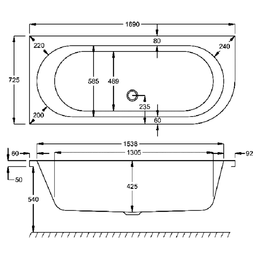 Constructed from premium 5mm white acrylic, this bathtub is not only long-lasting but also delivers exceptional comfort. With a depth of 425mm and a spacious capacity of 205 litres, it guarantees a luxurious soak for the ultimate relaxation experience.