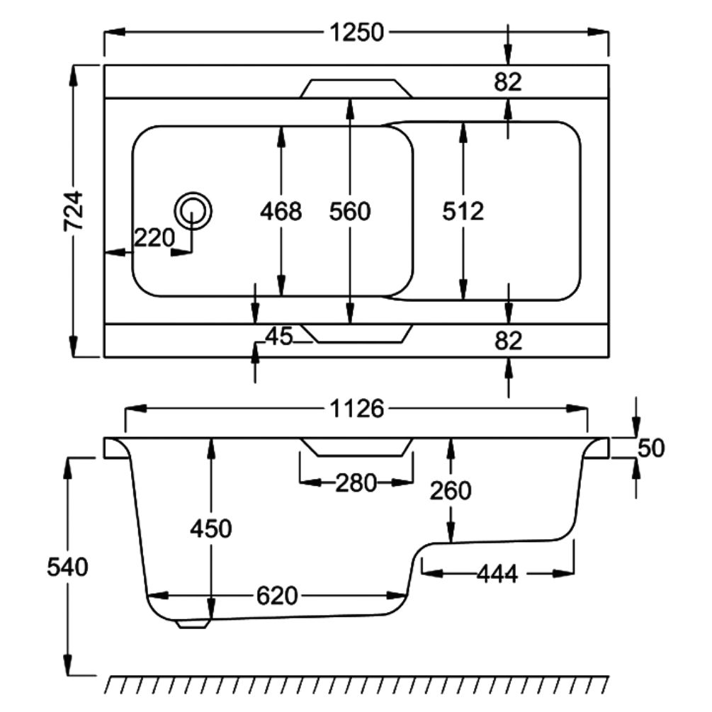 This bathtub features a maximum depth of 450mm with a total volume of 155 litres of water. Rising 190mm from the bathtub floor and reaching 444mm in length, the built-in seat provides exceptional seating comfort while ensuring adequate water coverage for a satisfying soak. To improve accessibility, the bathtub is fitted with two useful handgrips, each measuring 280mm. Positioned strategically in the middle, these handgrips make it easier to hold on when entering and exiting the bath.