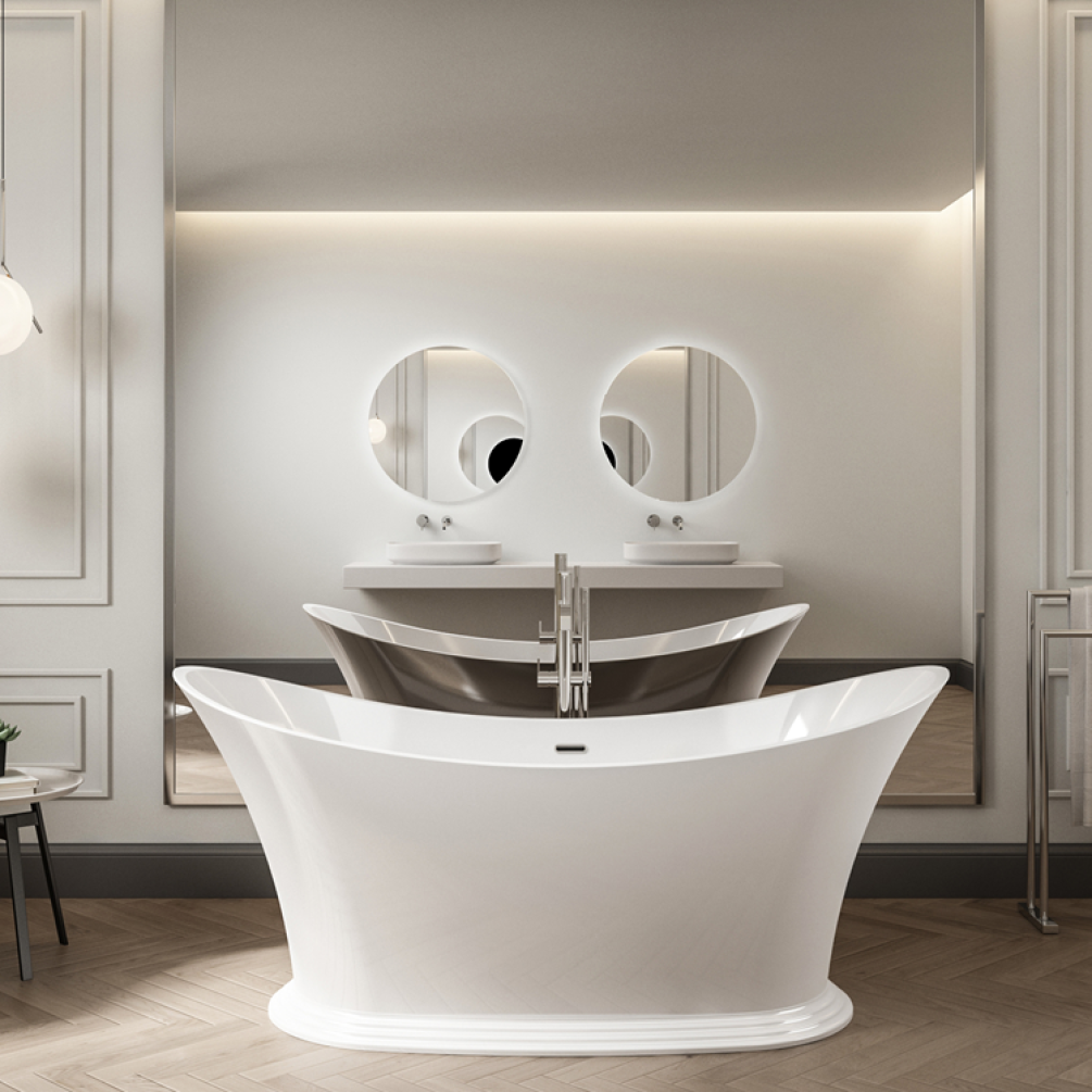 This spacious double ended bath from Charlotte Edwards features a Boat Bath Bateau design, suitable for use with freestanding bath taps. Features a striking Gloss White finish and is manufactured from cosy, heat retaining acrylic that will transform any traditional bathroom space.