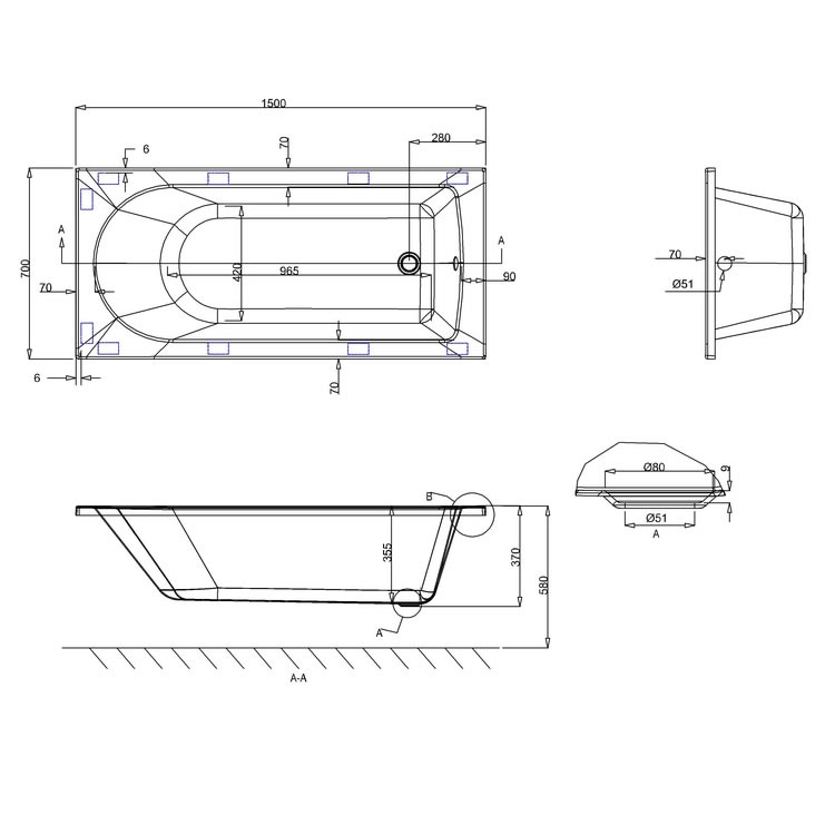 - Dimensions: L: 1500 x W: 700 x H: 370mm