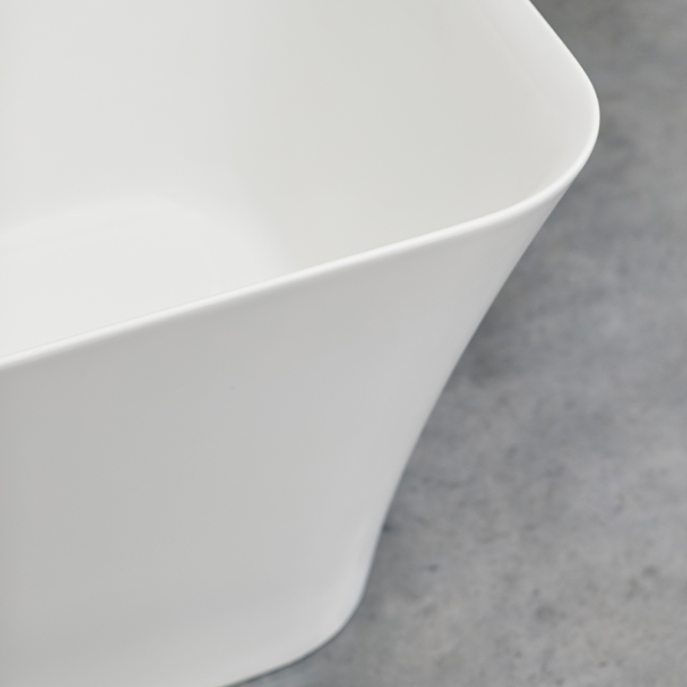 The gorgeous, angular design features minimalist thin edges and a softer profile for a clean and contemporary look. The smooth gloss finish oozes indulgence and the thin edges provide a larger internal bathing space for a comfortable and relaxing bathe. Clear Stone baths are not only a luxury choice but also a practical one, the solid material is hard wearing and easy to maintain – minor scratches and chips can be repaired, and the gloss finish is easy to clean.
