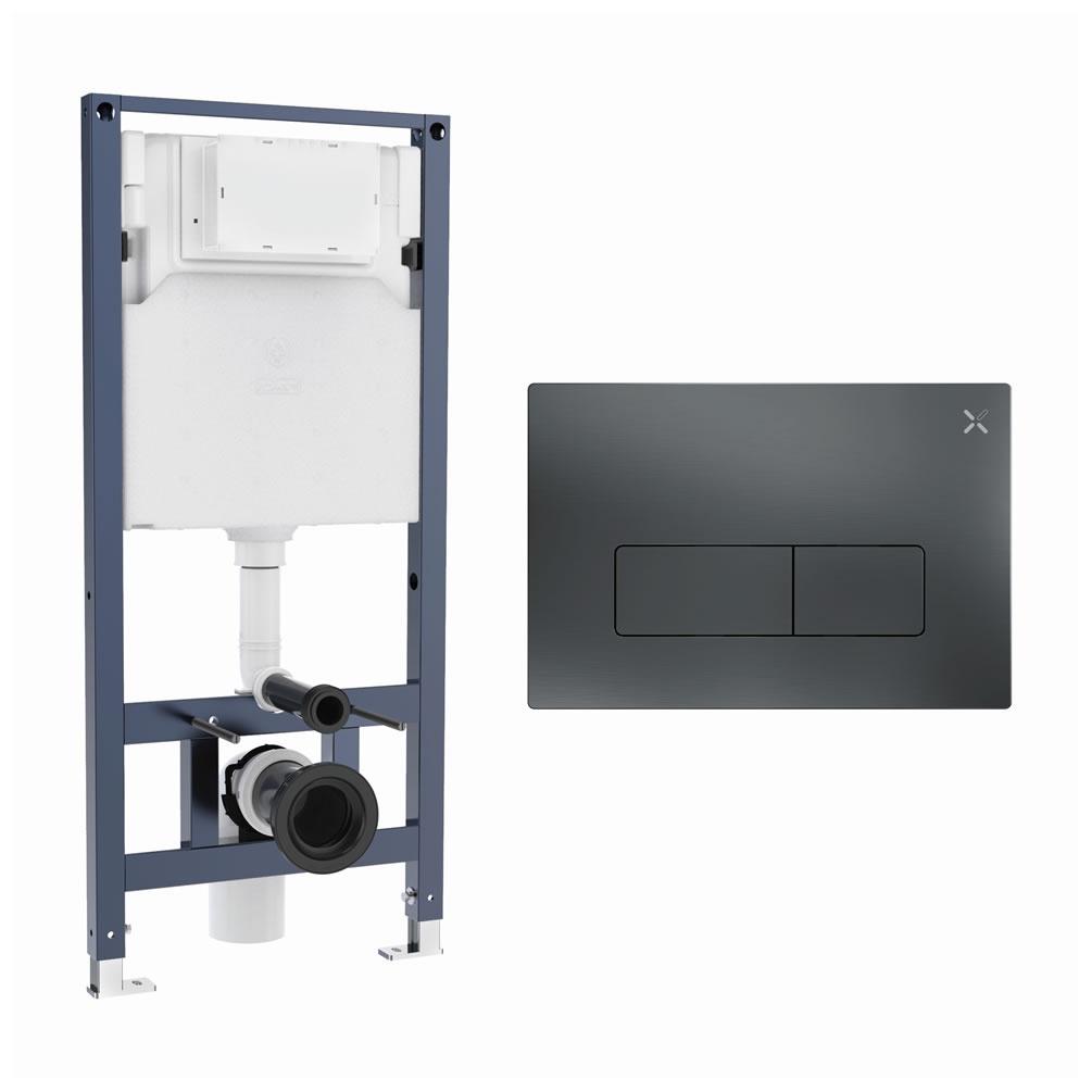 Created for Crosswater wall-hung toilet pans, this installation system ensures reliable long-term quality. The set comprises a wall-mounted WC cistern frame with an MPRO slate ABS dual flush plate. The steel frame provides robust yet unseen structural support, holding your toilet pan securely in place from its hidden alcove within your bathroom wall.