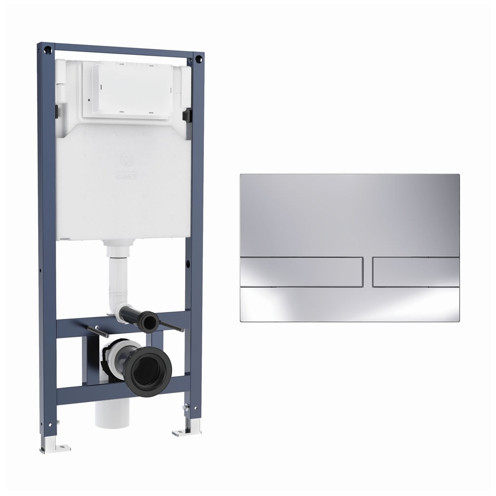 The frame secures the pan in place, concealed within your bathroom wall to offer sturdy fixing without intruding upon your space. The cistern, meanwhile, offers a choice of dual flush volumes, adjustable between the default 6/4 litres and reduced 4/3.5 litres. Rounding things off, the Venue flush plate is manufactured from durable ABS with a crisp chrome finish and simple two-button interface.