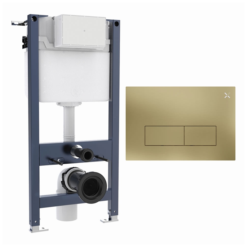 Presented by Crosswater, this deluxe set comes complete with an MPRO stainless steel flush plate in dazzling brushed brass. Compatible with wall-mounted toilet pans, the frame is hidden away inside your bathroom wall to provide invisible support. It can handle loads of up to 400kg, with adjustable feet and a reduced depth to ensure seamless installation. The cistern uses sound-deadening pads to limit noise and vibration, while its dual flush configuration can be adjusted from 6/4 litres to 4.5/3 litres if preferred.
