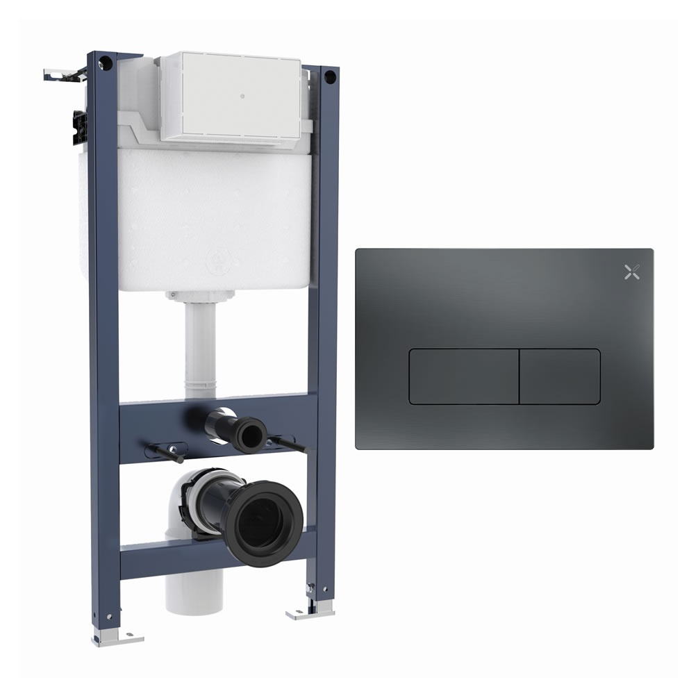 No wall-hung toilet can function without the right hardware, and this Crosswater set gives you all the tools to succeed. The pack includes a concealed wall-hung cistern frame with a dual-flush MPRO flush plate, finished in smoky, metallic-toned slate for maximum visual impact. The frame's steel build and tough fixings ensure long-lasting stability, bearing weights of up to 400kg without any issue. This is more than enough to support any wall-mounted toilet pan, along with whoever's using it.