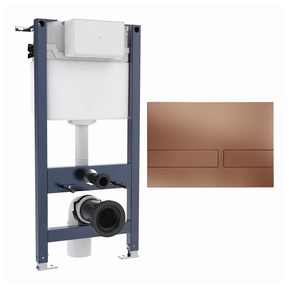 This Crosswater frame includes a high-performance dual flush cistern, complete with noise-deadening pads and an easily adjustable flush volume. You can opt for the standard 6/4 litre flush setting, or save even more water by switching to the economical 4.5/3 litre alternative. Finally, this cistern is equipped with a stylish Venue flush plate in cosy brushed bronze.
