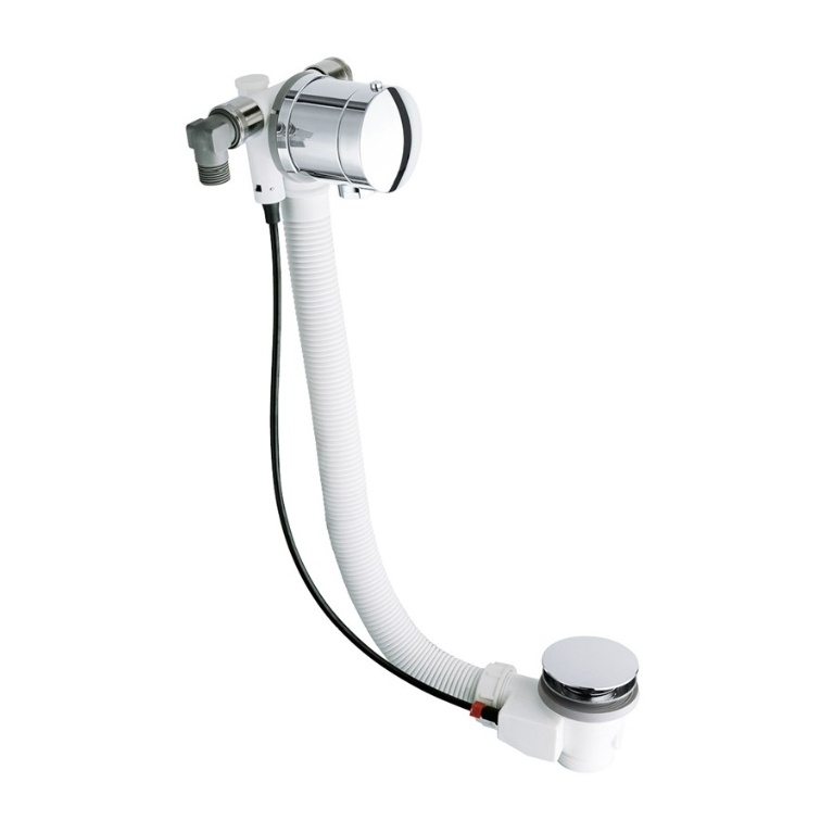 While the bath filler is mounted to the side of your bathtub the accompanying pop up bath waste sits beneath it, fixed into the base of your bathtub. Twisting the cylindrical body of the bath filler alternately closes and reopens the waste, allowing you to control the level of your bathwater without fishing around for the plug.