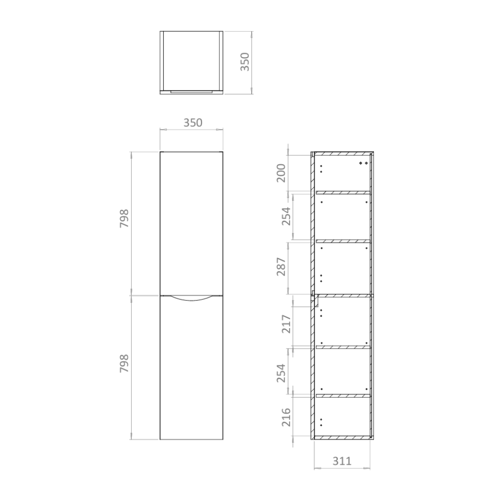 Gripping the lower door by the integrated handle, or hooking your fingers under the bottom of the door above it, allows you to swing the soft close doors open, gaining access to the five fixed height shelves inside. With approximately 250mm of space separating each of the shelves, feel free to stack each shelf with any number of useful bathroom items, from smaller products like toiletries and cosmetics, to larger items like neatly folded bath towels.