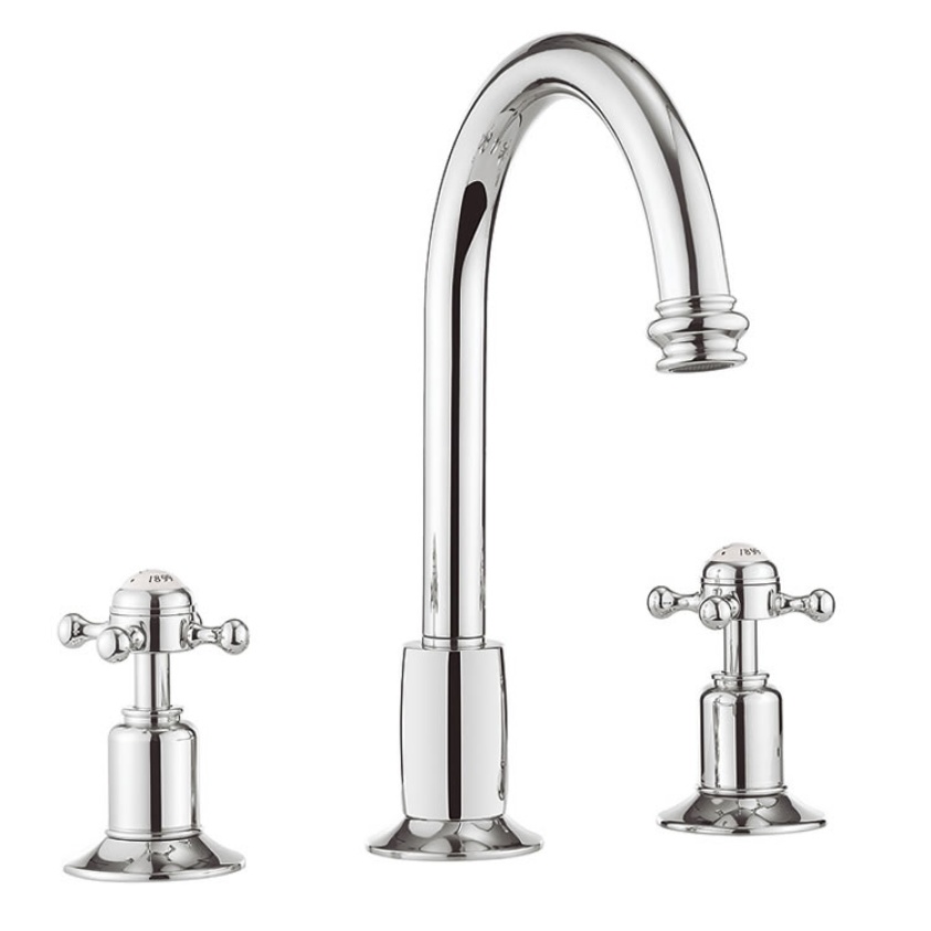 These beautifully styled deck mounted basin taps from the Crosswater Belgravia Crosshead collection is a perfect option for any traditional bathroom.