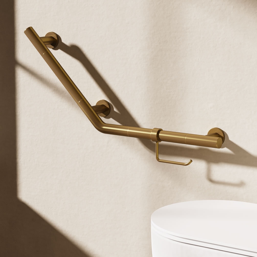 An accessible bathroom doesn't have to mean an unglamorous one these days, as this elegant dual-function grab bar demonstrates. Part support rail, part toilet roll holder, this Crosswater item fits securely to your bathroom wall to serve as a multifaceted modern accessory. It's constructed from 304 stainless steel with a PVD brushed brass finish, bringing a sense graceful radiance to enrich your space. The rail provides reliable grip for those with mobility issues, allowing them greater independence in their daily lives. The toilet roll holder, meanwhile, can be removed if desired, allowing you to place the rail elsewhere in your bathroom if preferred.