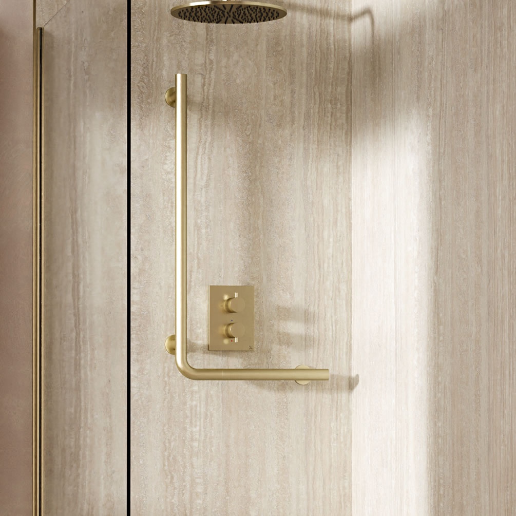 Designed for accessible bathrooms, this wall-mounted grab bar is sleek, strong and highly desirable. It's constructed from 304 stainless steel with robust wall fixings, locking firmly in place for assured safety and support. This right-angle rail can be placed anywhere in your bathroom, providing vulnerable users with something to grip onto should their mobility be impaired. The brushed brass finish matches numerous other Crosswater items, including taps, accessories, wall profiles and shower fittings, enabling flawless coordination throughout your space.