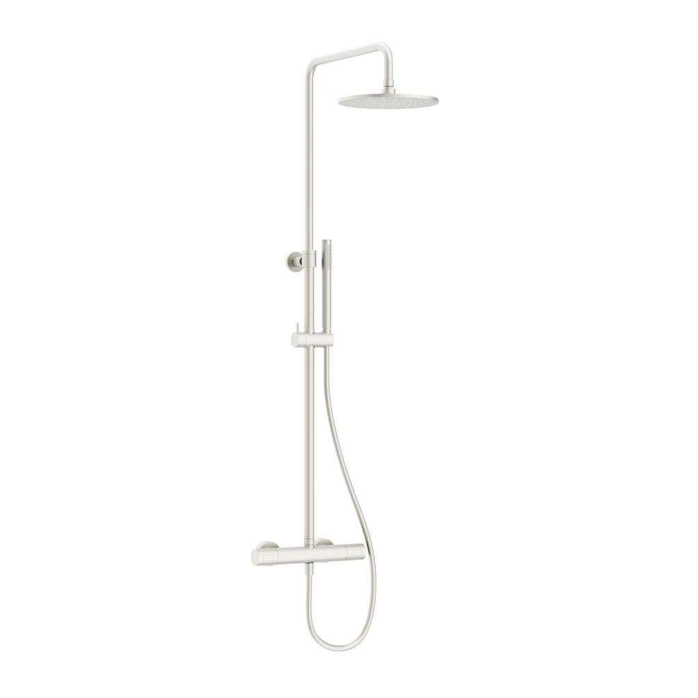 Tall, elegant and swathed in a rugged brushed nickel finish, this shower column is a highly desirable item. It's ideal for any contemporary bathroom, sinking softly back to integrate seamlessly with the rest of your interior design theme. The column features a 225mm rainfall shower head, complemented by a smaller, more versatile stick-style shower handset. The main slide rail is adjustable for height, while the handset's holder bracket can also be slid up and down as required.