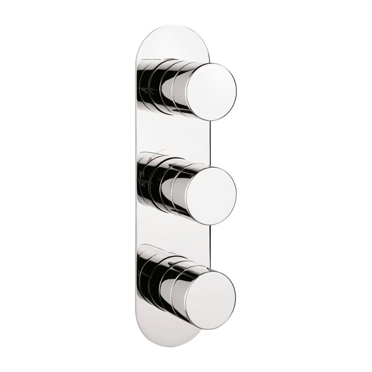 The three dials of this thermostatic shower valve, which measures 67mm in width and 262mm in height, are mounted on an oval shaped backing, with smooth surfaces to replicate the clean design shared by all the products in the Crosswater Drift collection.