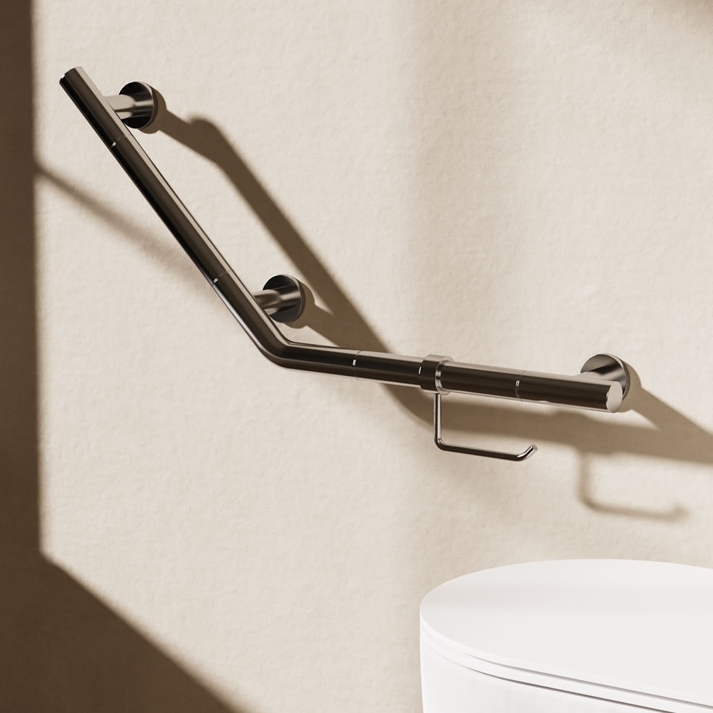 Cultivate a modern, accessible bathroom with this innovative multipurpose accessory, available now from Crosswater. Part grab bar, part toilet roll holder, this sleek rail lessens wall clutter by reducing the number of separate accessories required. Its steel build and secure fixings ensure dependable stability, while the crisp chrome finish looks the part in any contemporary setting. Additionally, should you wish to install this grab bar anywhere else in your bathroom, the toilet roll holder component is fully removable.