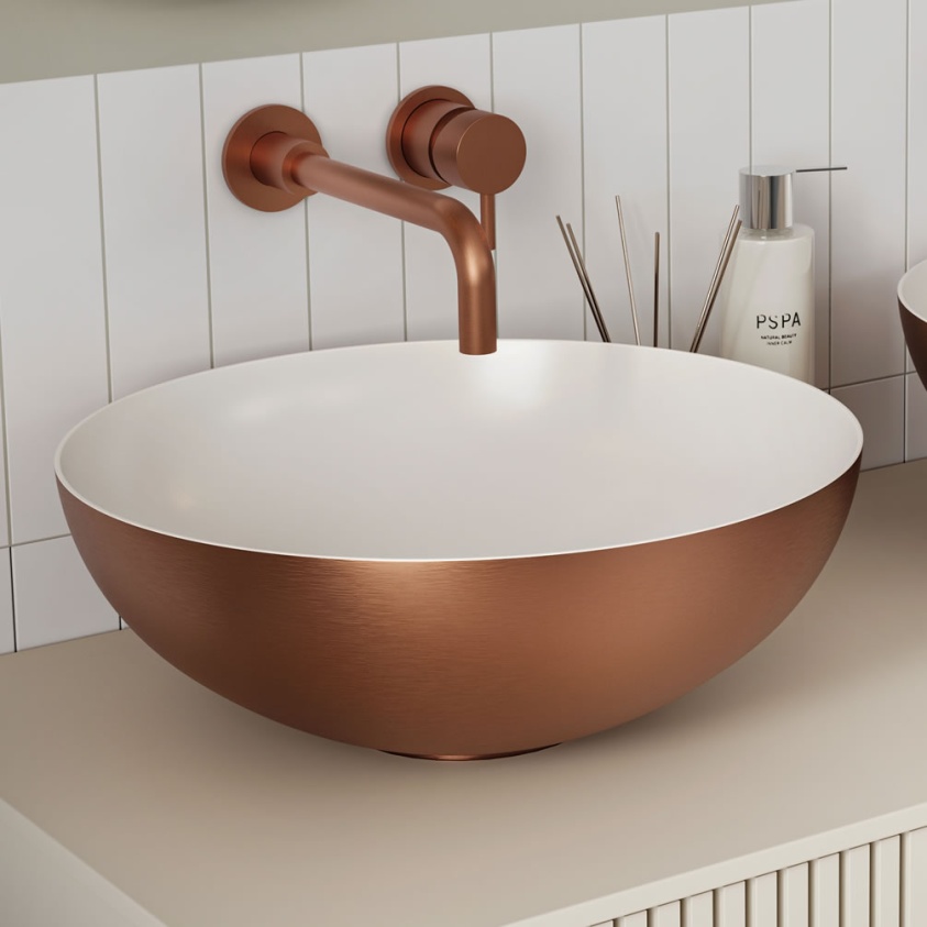 Bring a deliciously decadent flourish to your bathroom with this magnificent countertop basin. Proudly presented by Crosswater, this elegant vessel sink features ultra-slim edges with a sleek Matt Cru interior. The brushed brass-effect finish is applied by hand, infusing each and every model with unique texture and detailing.