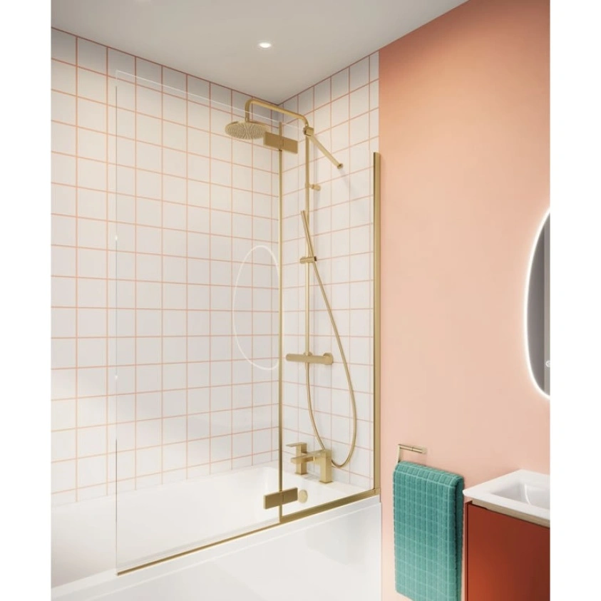 With its toughened glass build and stunning brushed brass accents, this hinged screen is a fine choice indeed for your modern shower bath.