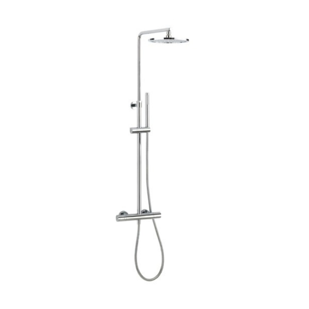 This shower set includes a cool touch thermostatic shower valve with fixed head and single mode shower handset.