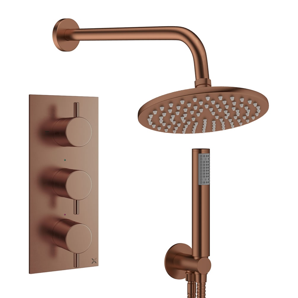 Commanding attention in all the right ways, this thermostatic shower gives you lavish bronze colour and concurrent outlet control.
