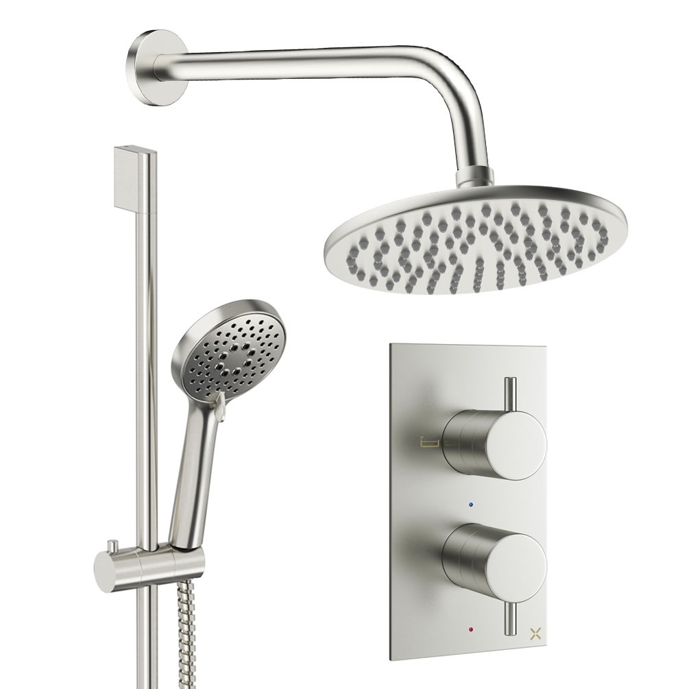 Understated sophistication is the name of the game with this brushed nickel shower pack, available now from Crosswater Design.