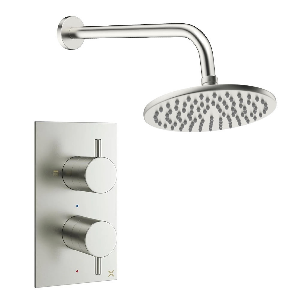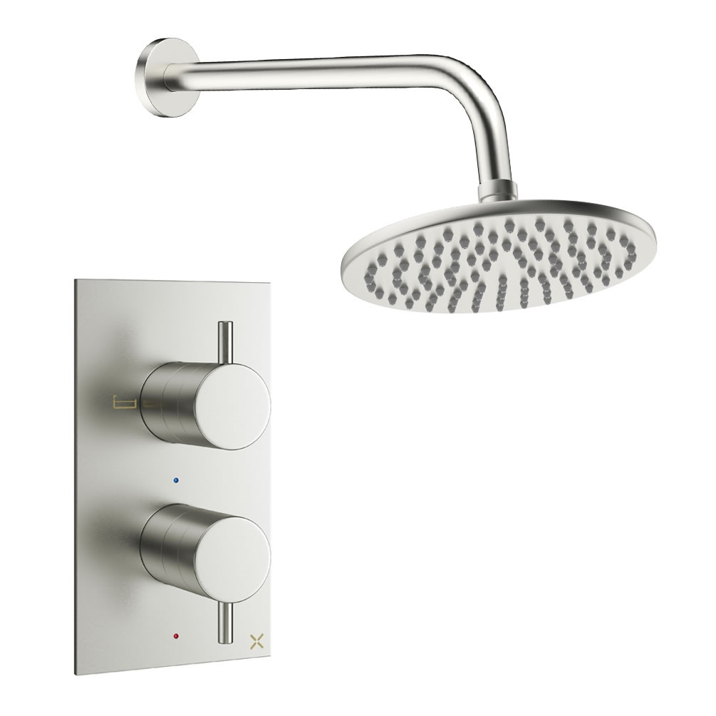 This thermostatic shower system takes the faff out of choosing your products, providing all the necessary items for stylish one-outlet setup. It includes a concealed shower valve, a 330mm wall-mounted arm and a choice of two elegant shower heads, each delivering an indulgent rainfall spray. The shower valve features simple, easy-to-use controls, with individual dial handles for water flow and temperature adjustment.